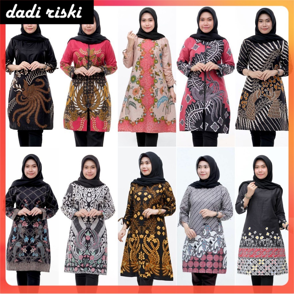 Tunik Batik Wanita Modern Terbaru JUMBO M L XL XXL Atasan Batik Wanita Seragam Murah Riskymabatik