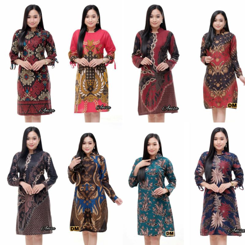Dress Batik Wanita Modern Lengan Pendek Casual Modis Trendy M L XL XXL Jumbo Original DNT Batik Solo
