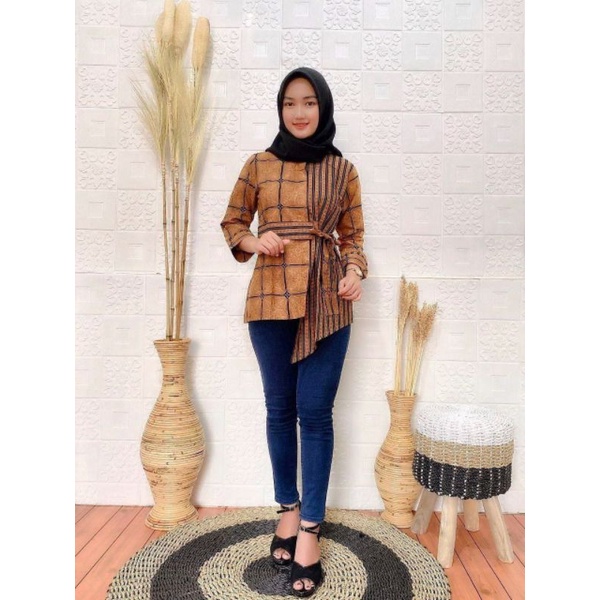 tey-17 Batik wanita ASJ SA HRB026 Kenongo Kemeja Tosca Pendek