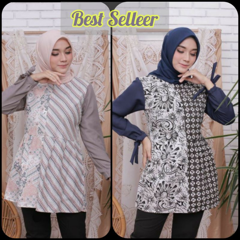 tey-17 Batik wanita ASJ SA HRB026 Kenongo Kemeja Tosca Pendek