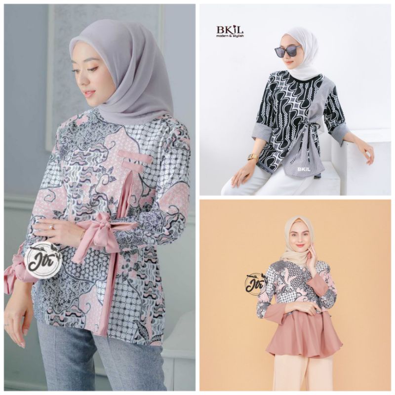 Blus Shiella hitam putih monokrom pendek lengan panjang Baju atasan katun halus Batik Wanita remaja cewek abg Kasual kerja kampus kuliah seragam seragaman kembaran sekolah etnik fashion Modern kasual trendy cantik kekinian terkini terbaru