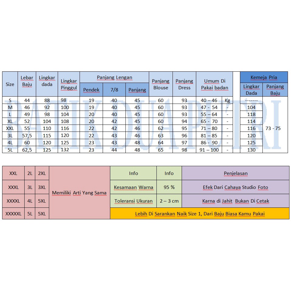 Produk ini memiliki 8 Variasi SIZE yaitu : S,M,L,XL,XXL,3L,4L,5L,
