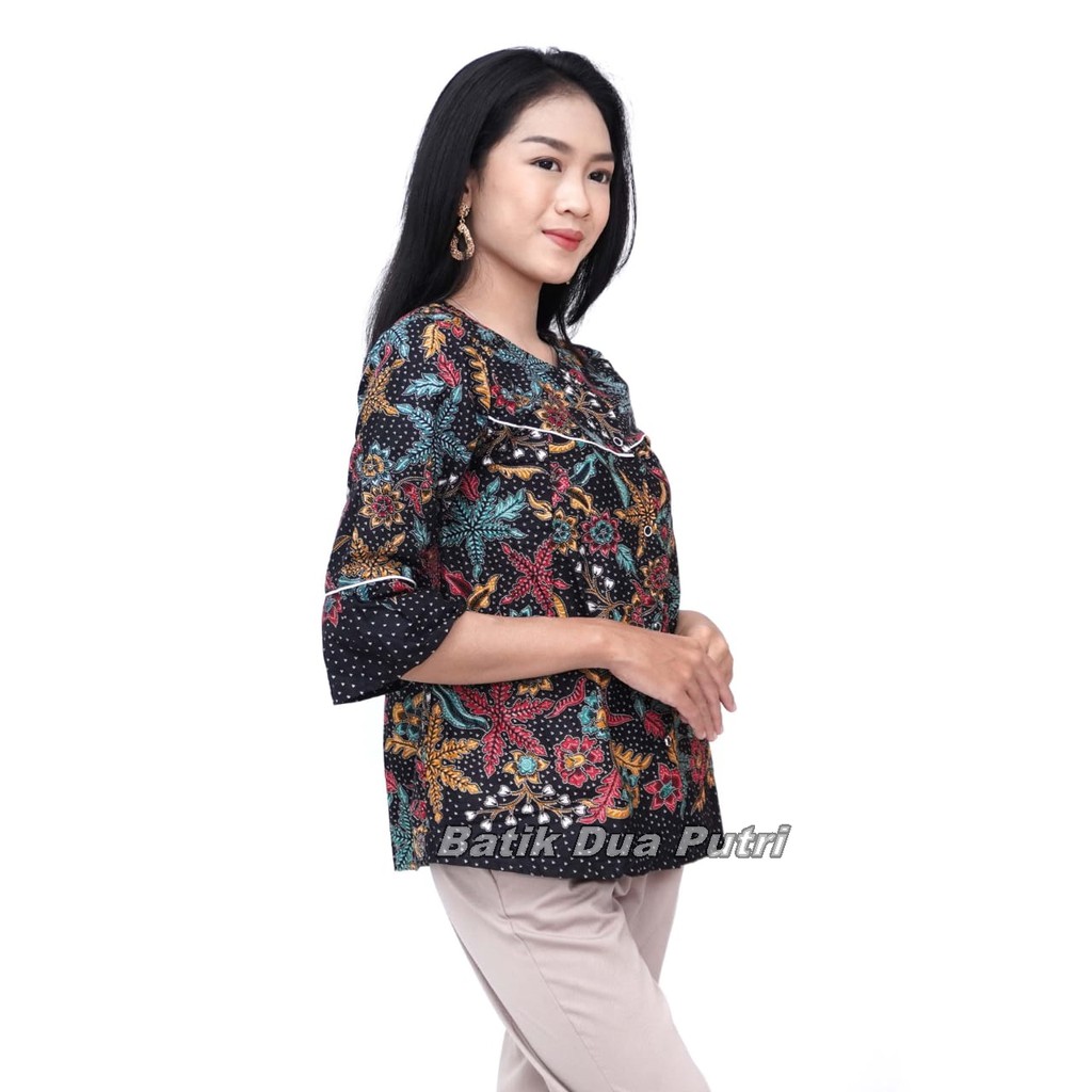 Harga Atasan Batik Wanita Blouse Lengan Panjang Warna Hitam Trend 2021 Size S-M-L-XL-XXL-3L-4L-5L