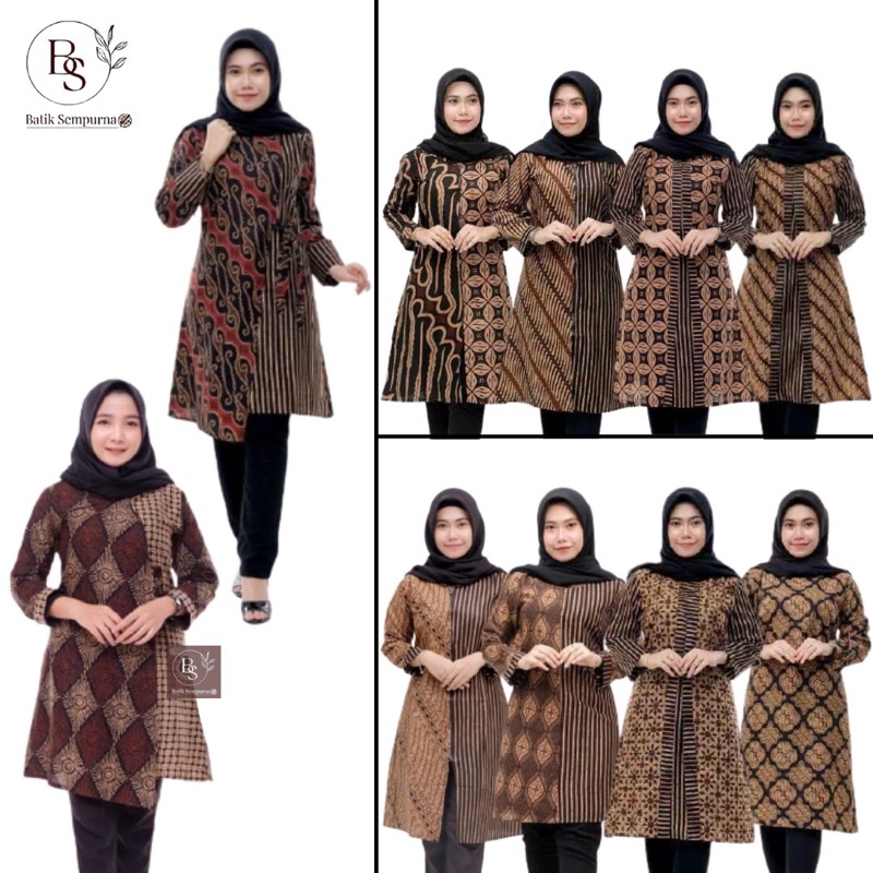 COD - Tunik batik wanita lawasan coklat kekinian M L XL XXL Jumbo