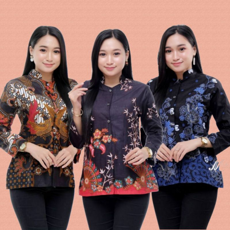 blus Monokrom Kombi Shiella baju batik Seragam kerja kantoran lengan panjang Baju atasan katun halus Batik Wanita Remaja cewek abg kasual modern elegan etnik fashion kekinian terkinii terbaru