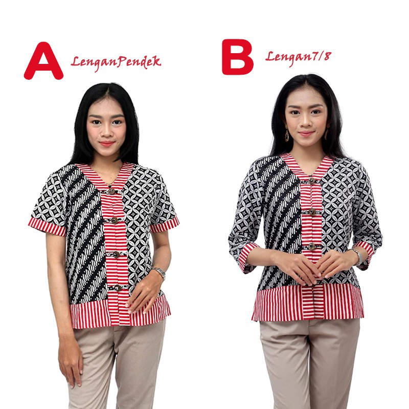 Blouse Batik Wanita Model Tiga Kombinasi - Atasan Batik Wanita - S M L XL 2L 3L 4L 5L
