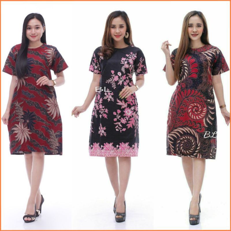 Dress Batik Wanita Modern Lengan Pendek Casual Modis Trendy M L XL XXL Jumbo Original DNT Batik Solo