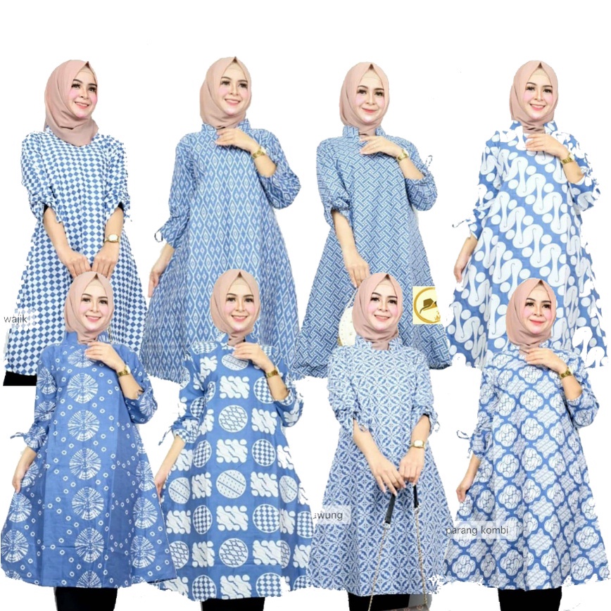 TUNIK BIRU, PAKAIAN BATIK WANITA, BAJU BATIK, SERAGAM KANTOR, SERAGAM BATIK #terbaru #top