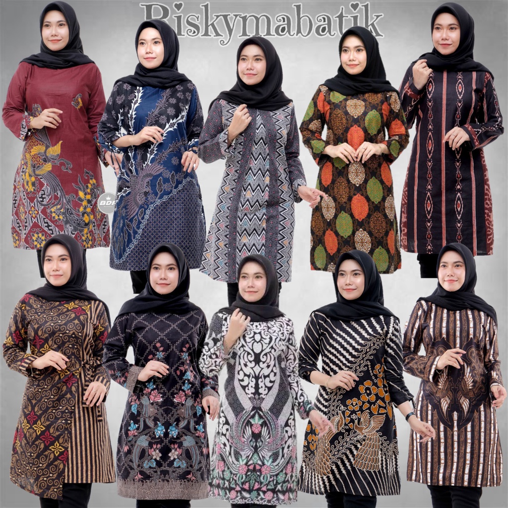 Tunik Batik Wanita Modern Terbaru JUMBO M L XL XXL Atasan Batik Wanita Seragam Murah Riskymabatik
